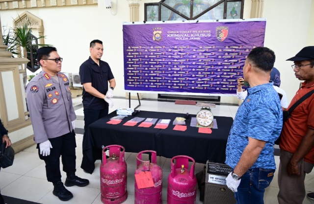 “Personel Subdit I Indagsi Ditreskrimsus Polda Jambi melakukan penyelidikan dan mendapati tiga orang pelaku yang sedang memindahkan isi tabung LPG 12 kilogram berisi ke tabung kosong dengan cara disuntik. Modus tersebut dilakukan untuk mengurangi berat isi tabung sekitar dua kilogram,” ujar Kombes Pol. Erlan Munaji