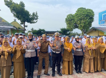 “Tertib berlalu lintas bukan karena takut ditilang polisi, tetapi karena kita menghargai nyawa kita sendiri dan orang lain,” ujarnya di hadapan ratusan siswa.