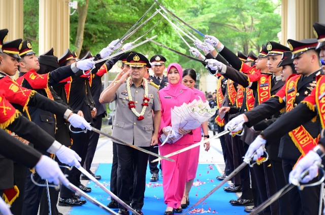 Momen pelepasan berlangsung khidmat dan penuh rasa kekeluargaan. Tradisi pedang pora mengiringi langkah Brigjen Pol M. Mustaqim saat berpamitan dengan seluruh jajaran Polda Jambi, sebagai bentuk penghormatan atas pengabdian dan dedikasinya.