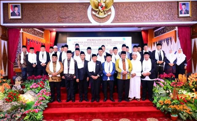 Kota Jambi - Wakapolda Jambi Brigjen Pol M. Mustaqim, S.I.K. menghadiri kegiatan Pengukuhan Dewan Pimpinan, Komisi dan Lembaga Majelis Ulama Indonesia (MUI) Provinsi Jambi Masa Khidmat 2025–2030 sekaligus Pembukaan Musyawarah Kerja Daerah (Mukerda) MUI Provinsi Jambi Tahun 2026, yang digelar pada Sabtu malam (10/1/2026)