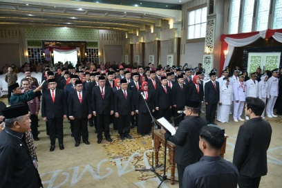 Kota Jambi - Guna memperkuat struktur pemerintahan dan meningkatkan pelayanan publik mewujudkan visi “Kota Jambi Bahagia”, Wali Kota Jambi, Dr.dr. H. Maulana, M.K.M, resmi melantik 128 orang pejabat dilingkungan Pemkot Jambi. Terdiri dari, 9 Pejabat Pimpinan Tinggi Pratama, serta 119 Pejabat Administrator, dan Pengawas.