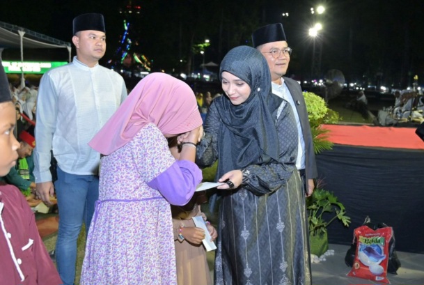 Ia menyalurkan secara simbolis bantuan senilai Rp115 juta, yang berasal dari hasil sedekah ASN dan Baznas Kota Jambi. Dengan rincian bantuan uang tunai bagi 454 penerima manfaat yang masing-masing menerima Rp200 ribu dengan total keseluruhan Rp90 juta 800 ribu. Sementara bantuan berupa paket sembako disalurkan kepada 123 penerima senilai Rp200 ribu per paket, dengan total keseluruhan Rp24 juta 600 ribu. Langkah ini membuktikan bahwa penguatan iman dan praktik kepedulian sosial berjalan beriringan. Pemandangan ini juga menjadi cerminan indah kebersamaan umat, sekaligus bukti kuatnya syi’ar Islam yang terus hidup, tumbuh, dan mengakar di bumi Tanah Pilih Pusako Batuah.