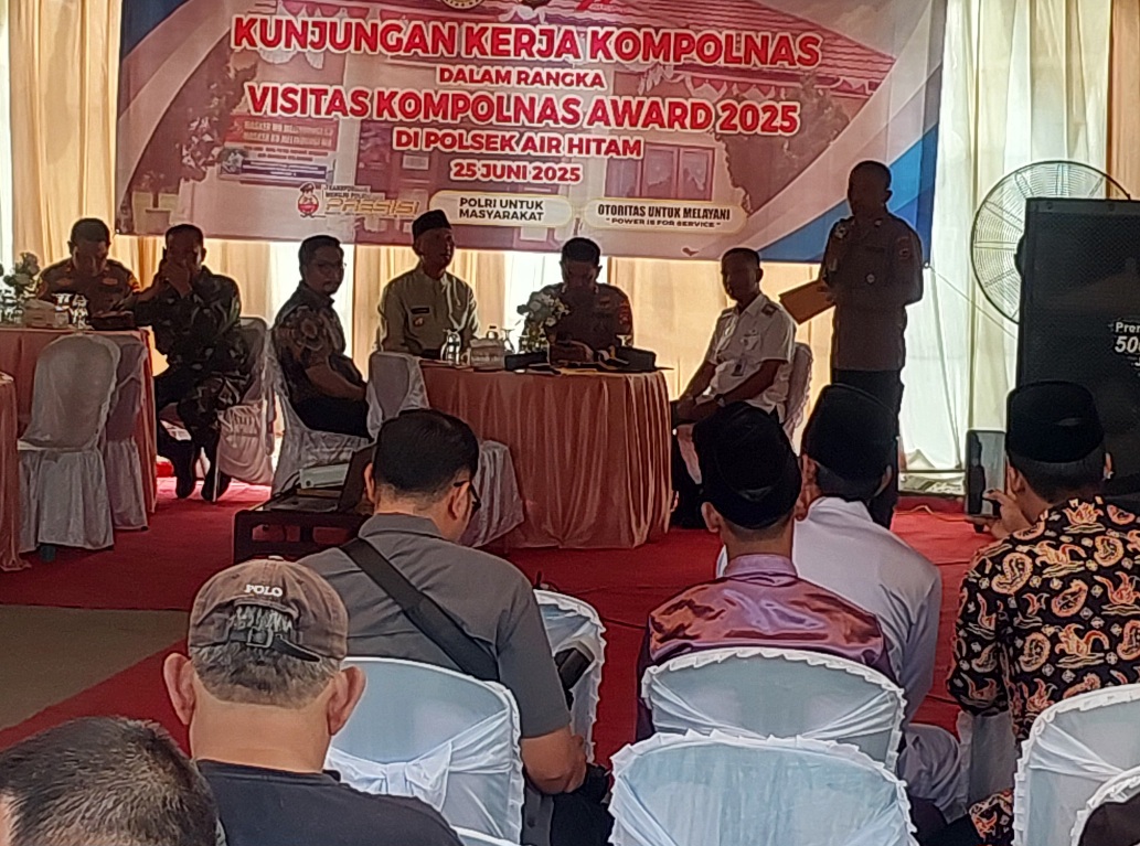 Sarolangun - Tim penilai dari Komisi Kepolisian Nasional (Kompolnas) Indonesia, terdiri tiga orang yang diketuai, Yusuf beserta dua anggota lainya, James Leonardo Joni, dan Mardona Lamtio, Rabu (25/06/2025) mendatangi Polsek Air Hitam yang merupakan salah satu nominator calon penerima Kompolnas Award 2025 di Indonesia dengan kategori Harkamtibmas (Pemiliharaan Keamanan dan Ketertiban Masyarakat) Polsek tipe B.