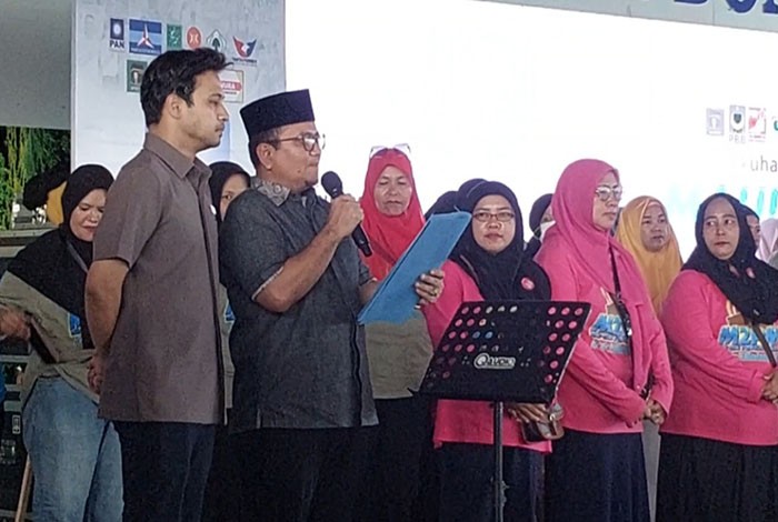 “Hari ini yang pertama dikukuhkan relawan, ribuan emak emak yang hadir dari mulai tingkat kecamatan sampai ke RT, secara konversi akan dilakukan pengukuhan relawan ini,” terang Maulana.