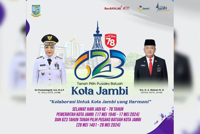 Kolaborasi Untuk Kota Jambi Yang Harmoni” menjadi tema HUT Kota Jambi dan Hari Jadi Tanah Pilih Pusako Batuah Kota Jambi ini diikuti Forkopimda, OPD se Kota Jambi dan Instansi Vertikal, serta undangan lainnya.