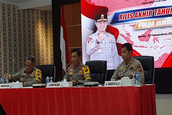 Penurunan angka tindak kejahatan tersebut disampaikan Kapolda Jambi, Irjen Pol. Rusdi Hartono disaat melaksanakan rilis catatan akhir tahun, Jum'at (29/12/2023) di Mapolda Jambi.